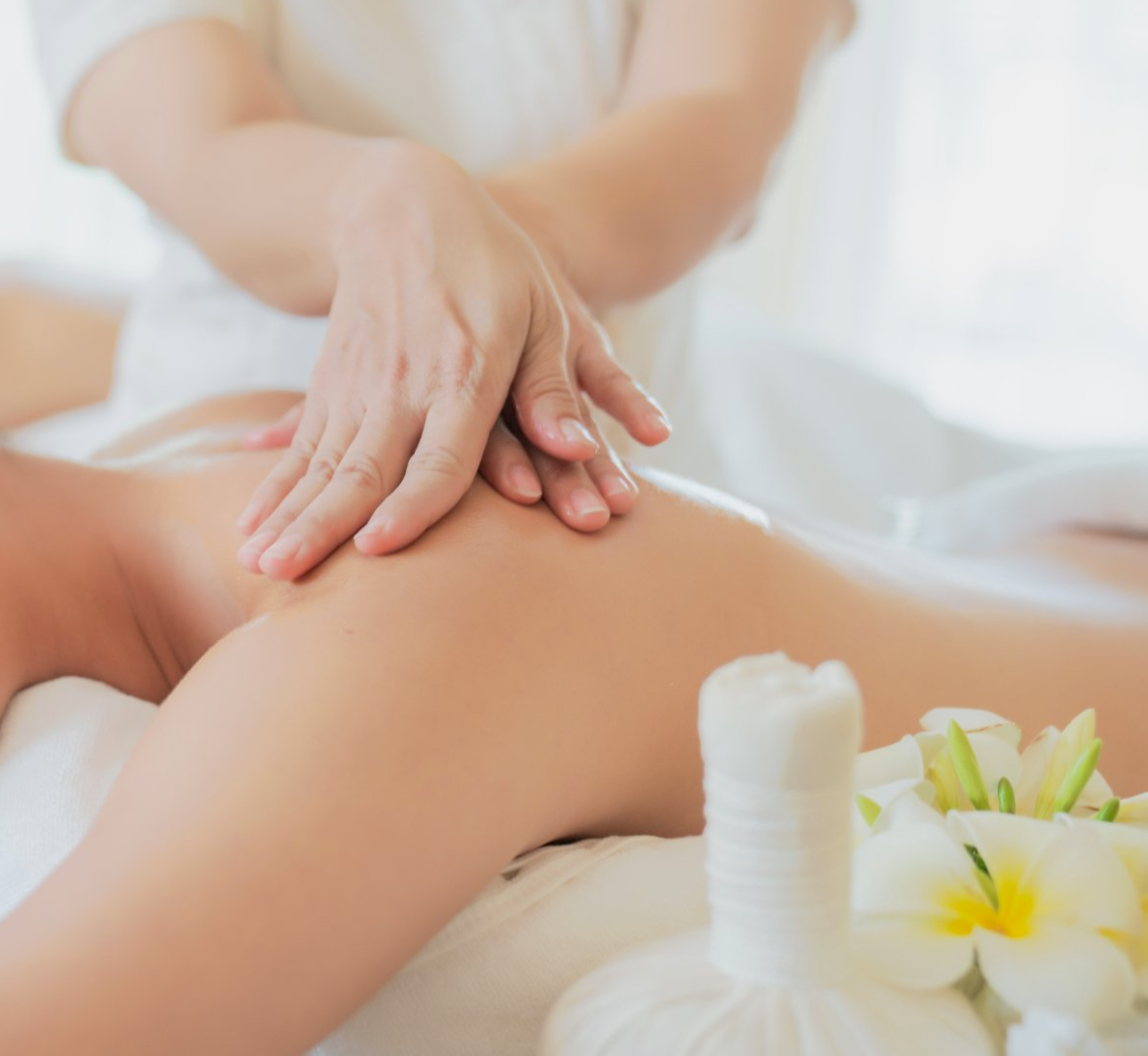 Erlebe das Zusammenspiel duftender ätherischer öle mit entspannenden Massagegriffen.